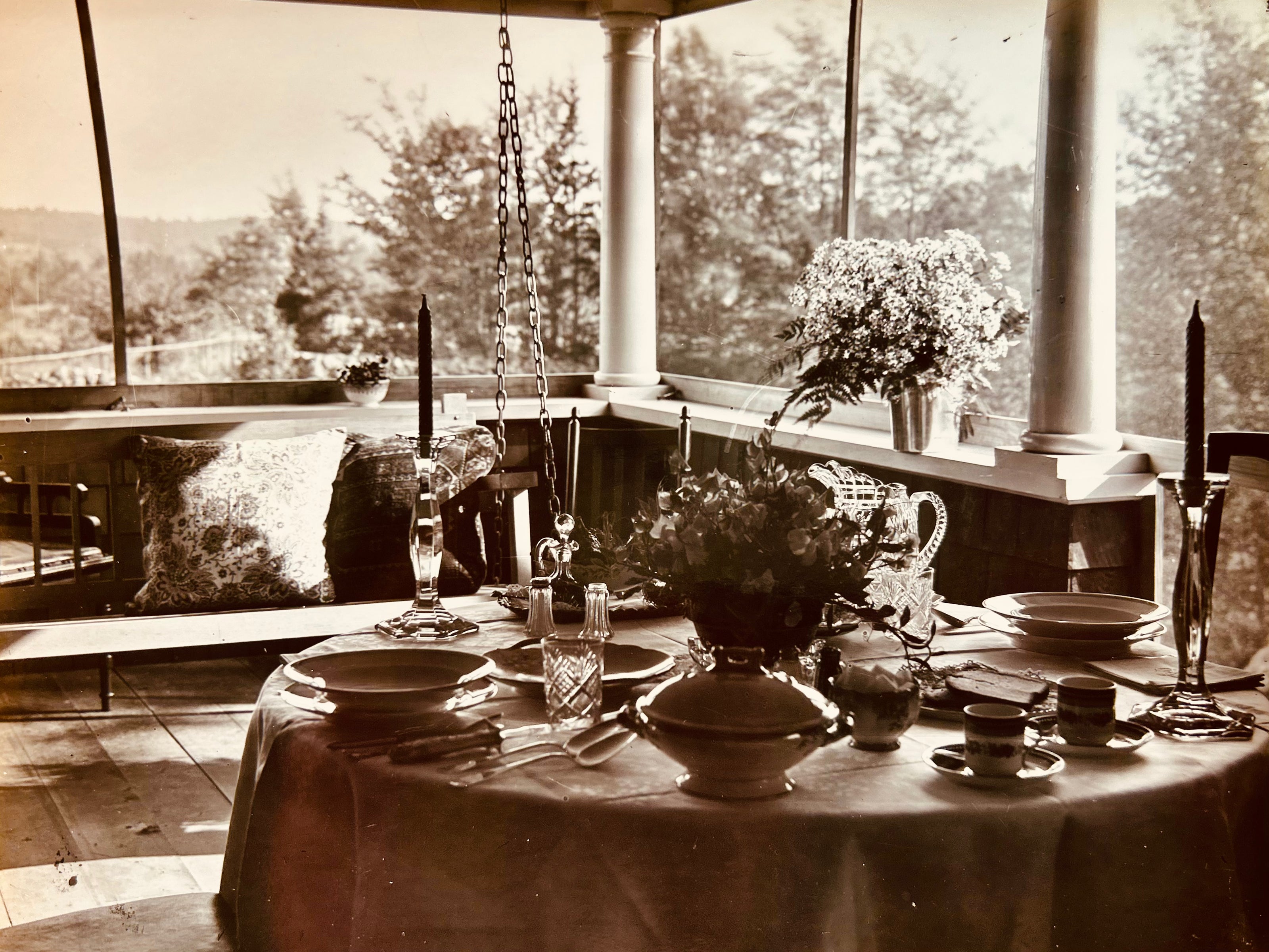 Beautiful place setting on the porch at Topo Pino in the early 1900s.