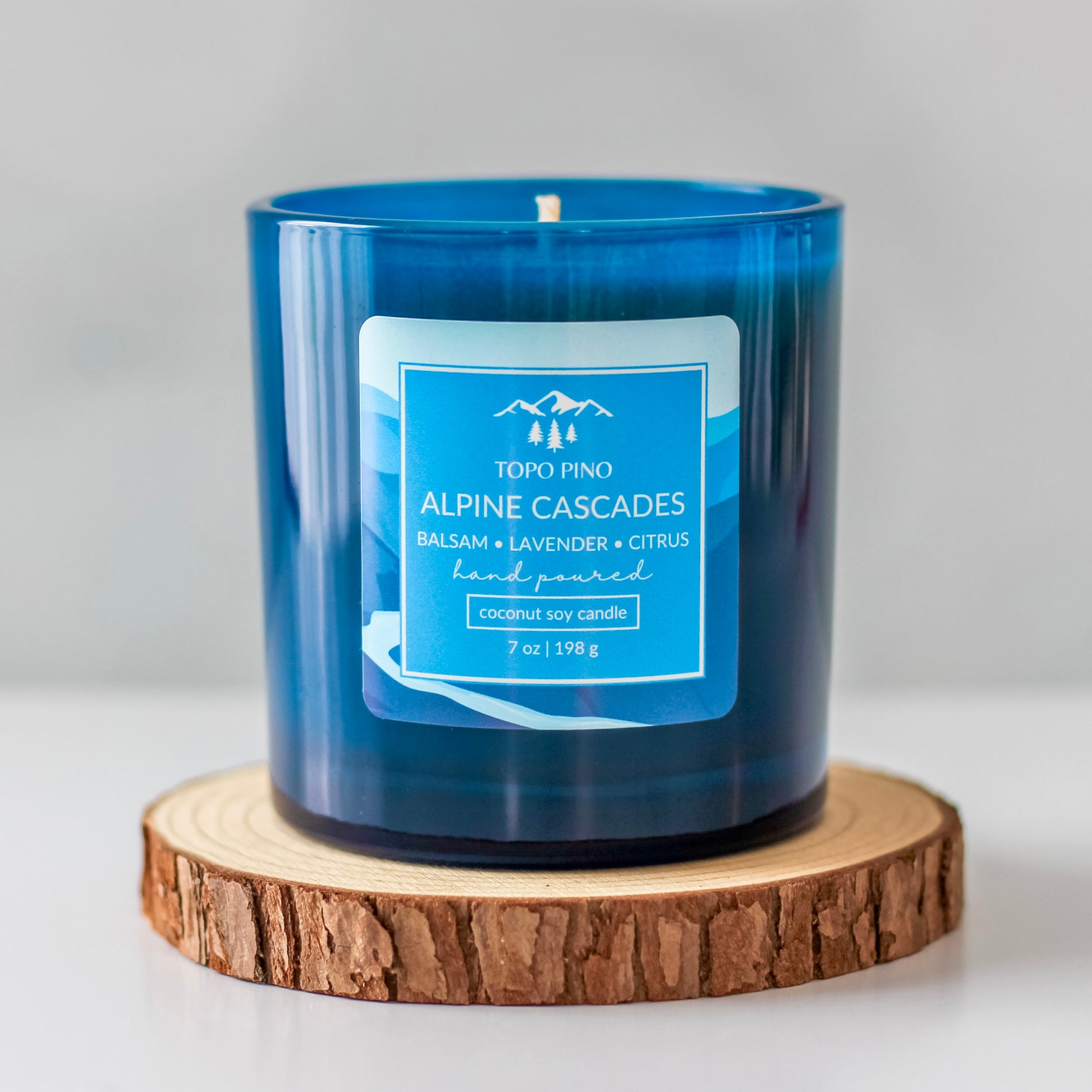 Immerse yourself in the unique blend of Topo Pino's Alpine Cascades 7 oz candle, which infuses the room with the refreshing scents of balsam, lavender, and citrus. Transform your space into a serene oasis and experience the tranquil ambiance of a cascading waterfall, all from the comfort of your home.