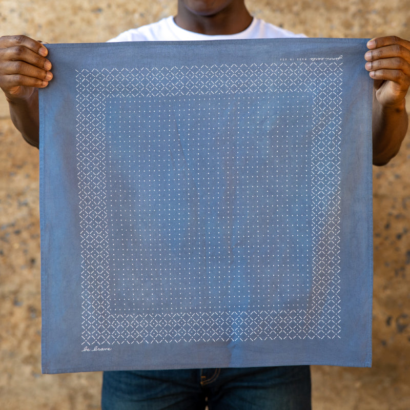 Hand dyed and printed bandana to be used as a talisman for resilience.