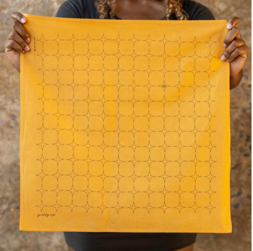 Hand dyed and printed bandana to be used as a talisman for resilience.