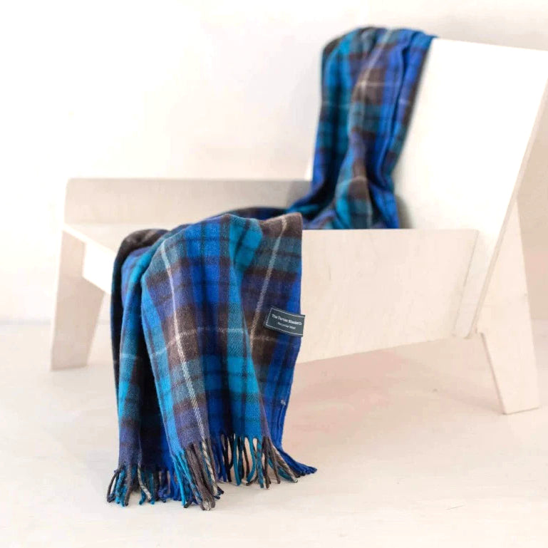 Recycled Wool Campfire Wrap in Buchanan Blue Tartan