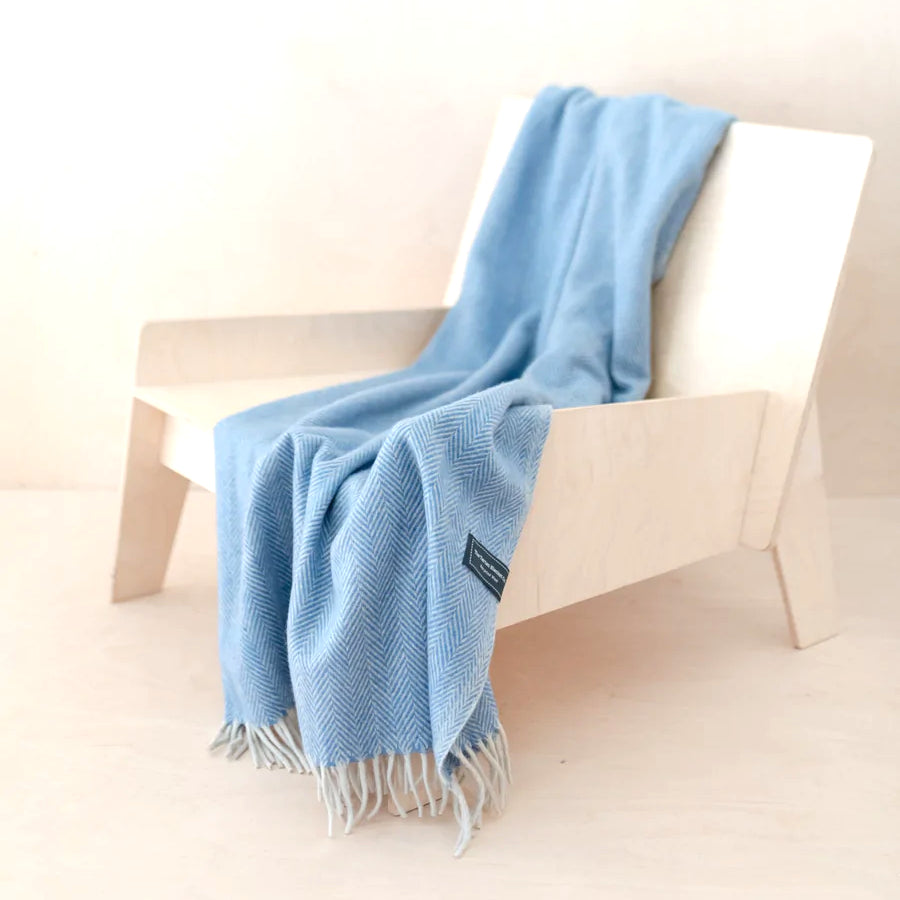 Recycled Wool Campfire Wrap in Sky Herringbone