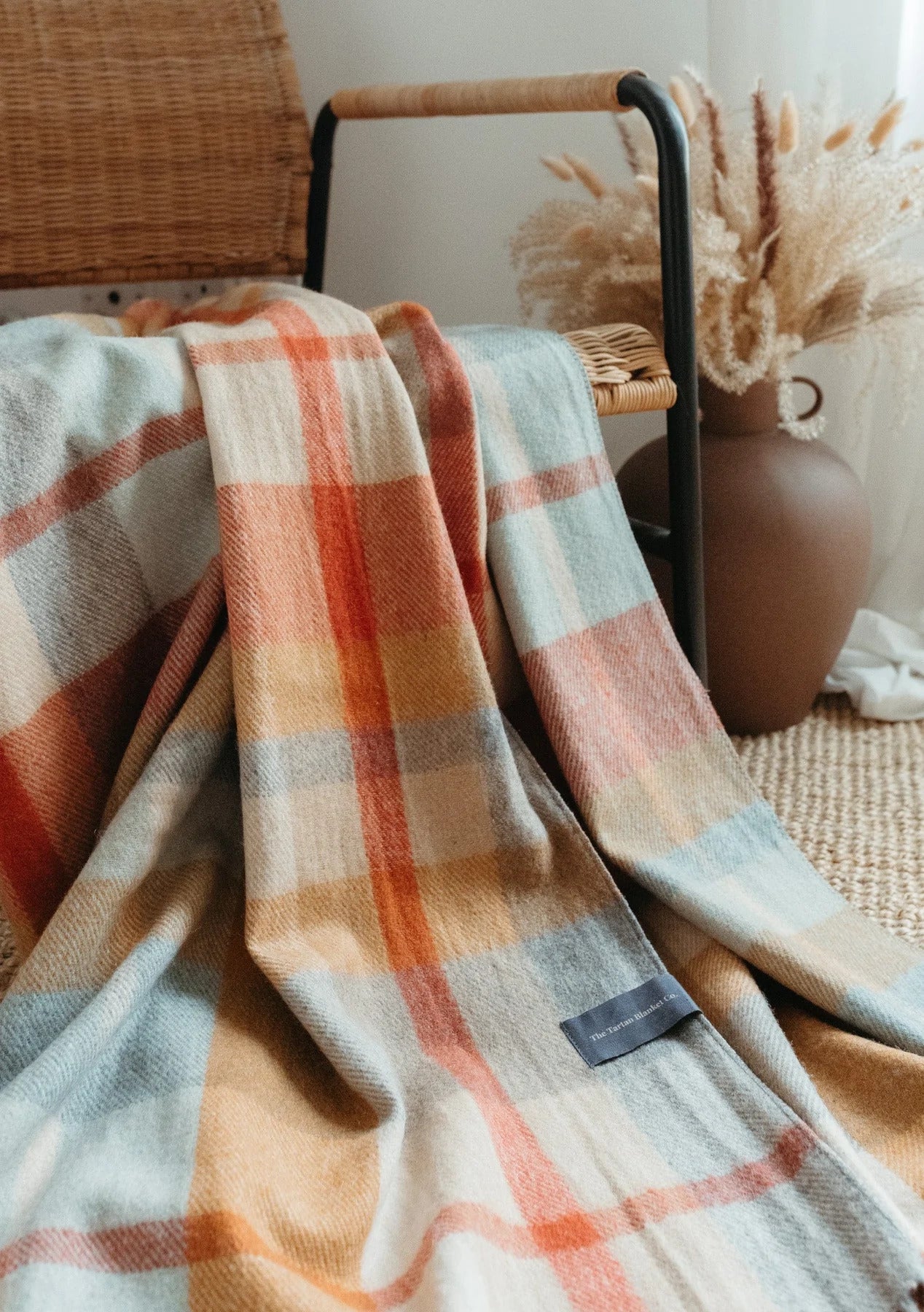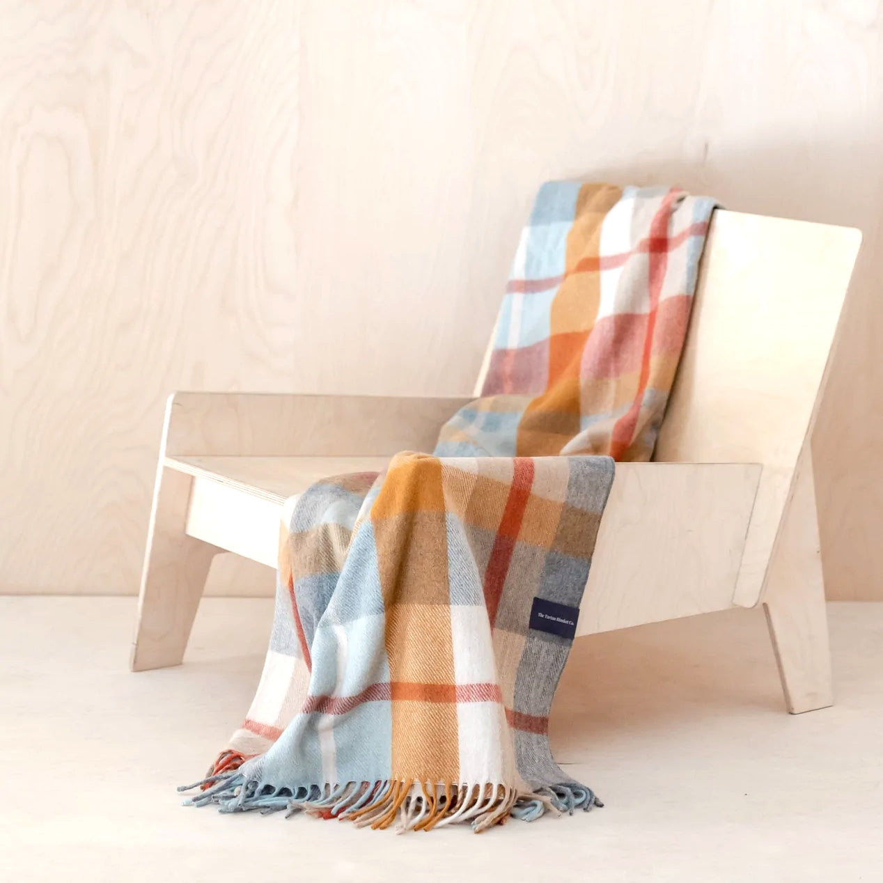 Woven from 70% Recycled Wool, 30% Mixed Recycled Fibers. Designed in Scotland by Tartan Blanket Co. This blanket is woven from a blend of recycled wool with longer mixed fibers. This creates a soft and durable yarn, which is woven in a dense twill weave and brushed for texture. All the benefits of wool, in a sustainable blanket! What’s more, they’re even machine washable. Perfect for outdoor adventures, being cozy at home, staying warm at the cabin, and other explorations.