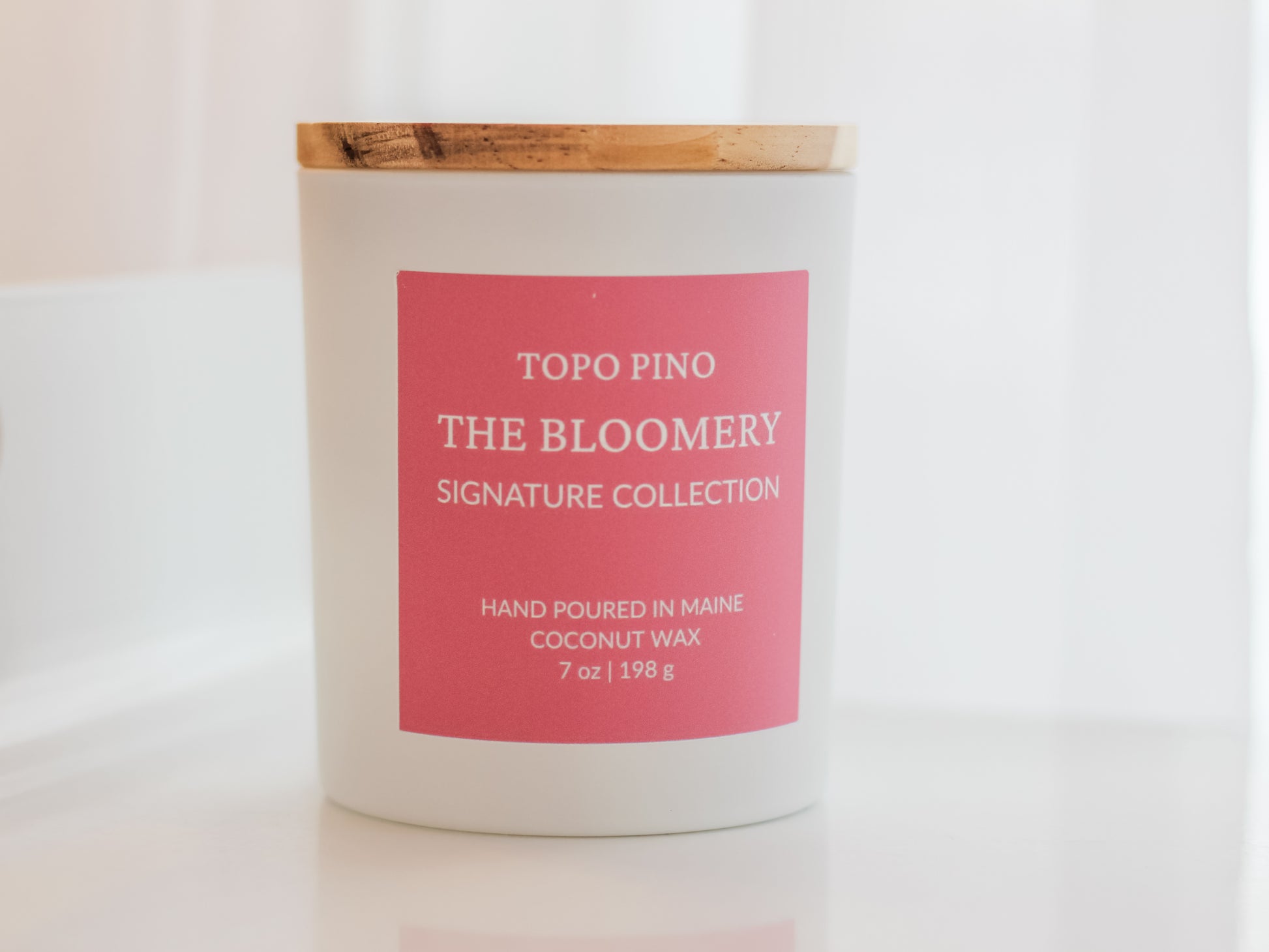 Hand-poured by our founder in Portland, Maine, The Bloomery is made with a premium coconut–soy wax blend and finished in a matte white glass vessel with a natural bamboo lid—designed to be lit often and lived with easily.