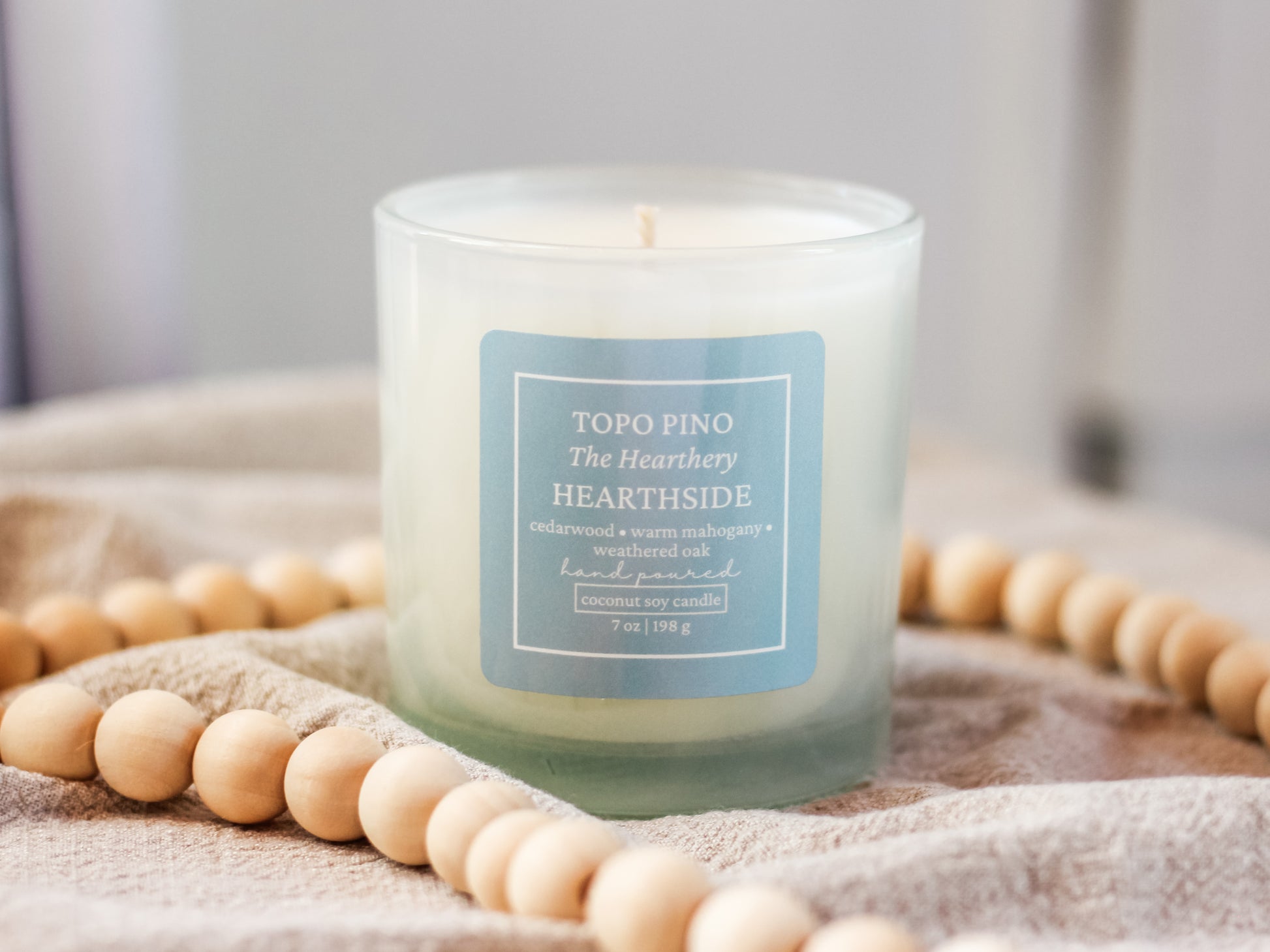 Hearthside is a candle for memory-keepers, slow sippers, and anyone who finds comfort in the passing of time. With grounding notes of cedarwood, warm mahogany, and weathered oak, this scent calls to mind creaking floorboards, firelit rooms, and worn books passed from hand to hand.